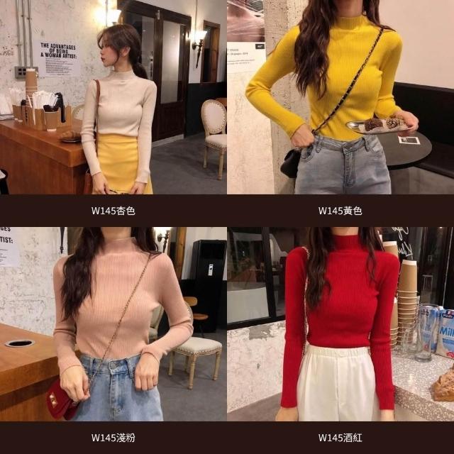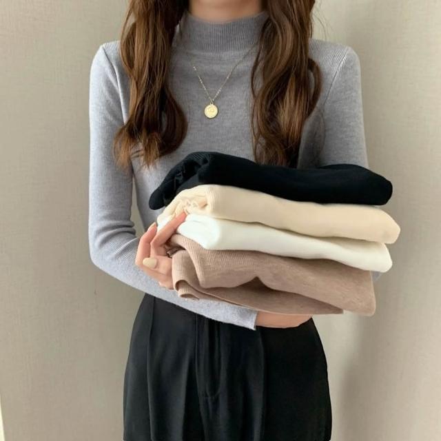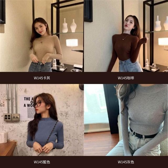 D.studio三件組 韓版溫柔風半高領彈性顯瘦針織上衣毛衣長袖上衣女裝衣服顯瘦上衣長袖t恤冬裝 發熱衣 W145 W332