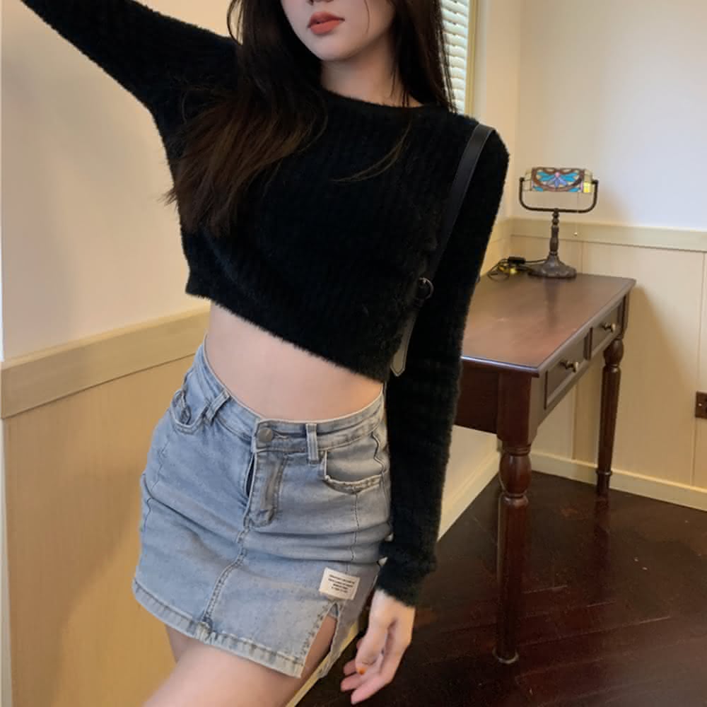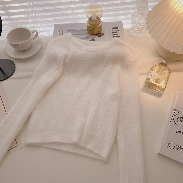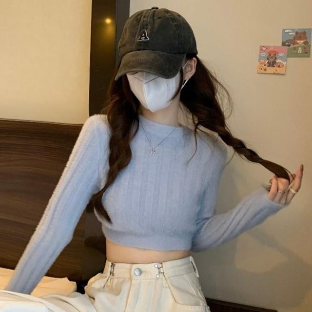 D.studio韓版針氣質溫柔風短版針織上衣毛衣 長袖上衣 女裝 衣服 顯瘦上衣 長袖t恤 冬裝 發熱衣 W254