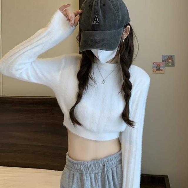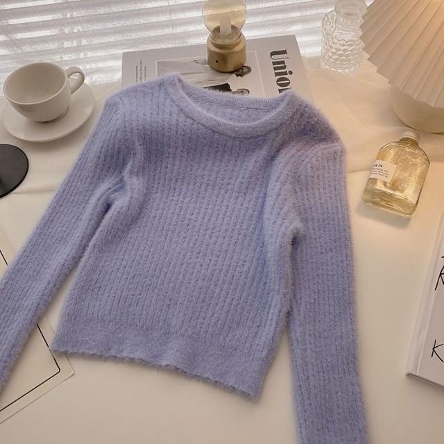 D.studio韓版針氣質溫柔風短版針織上衣毛衣 長袖上衣 女裝 衣服 顯瘦上衣 長袖t恤 冬裝 發熱衣 W254