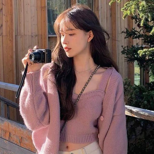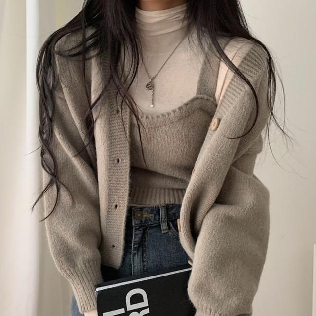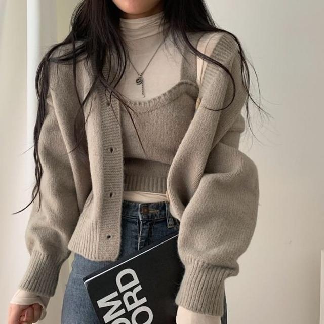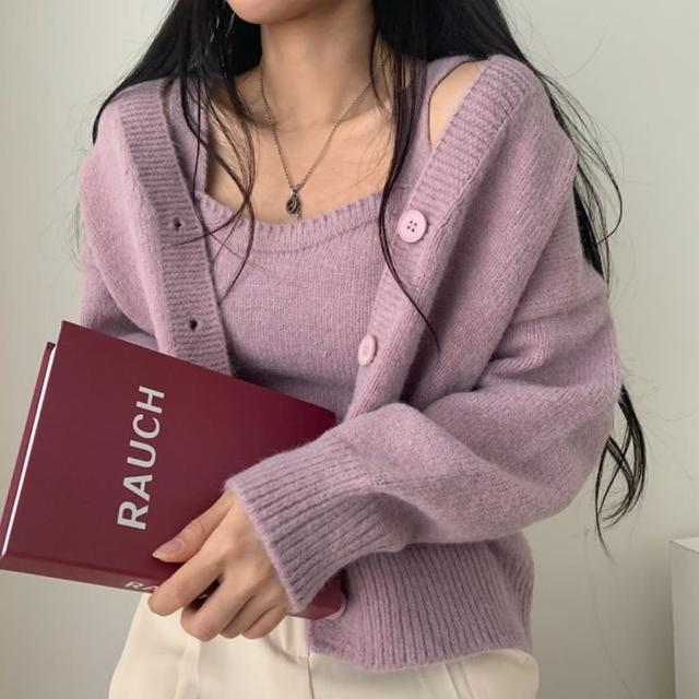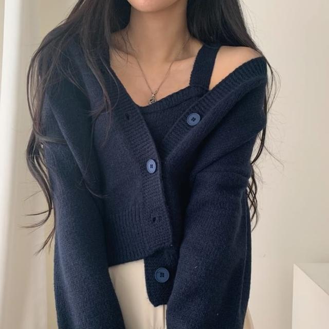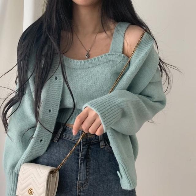 D.studio韓版氣質慵懶風毛衣針織外套+針織背心上衣 女裝 衣服 外套 長袖上衣 小可愛 套裝 J250