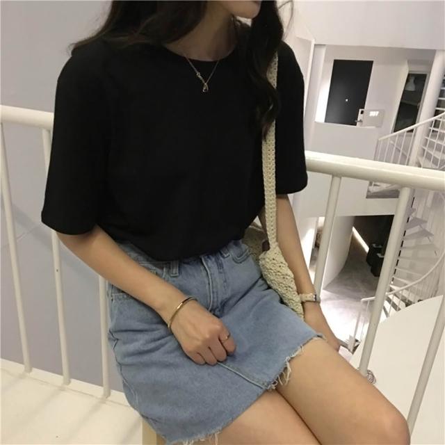 D.studio韓版慵懶風奶茶咖色休閒寬鬆短袖T恤超耐看色系 短袖上衣 女裝 顯瘦上衣 衣服 寬鬆上衣 素T T187