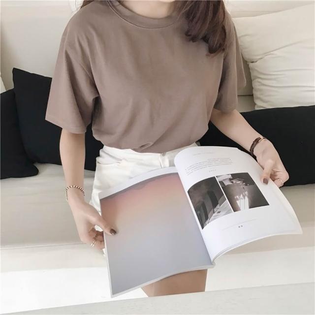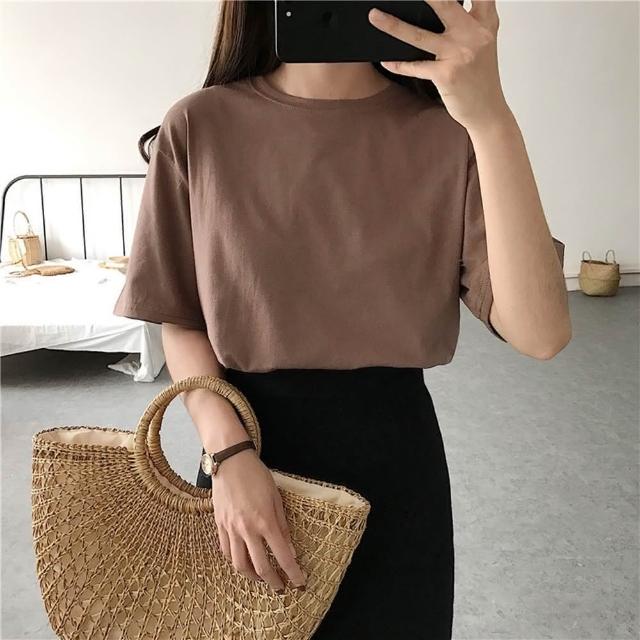 D.studio韓版慵懶風奶茶咖色休閒寬鬆短袖T恤超耐看色系 短袖上衣 女裝 顯瘦上衣 衣服 寬鬆上衣 素T T187