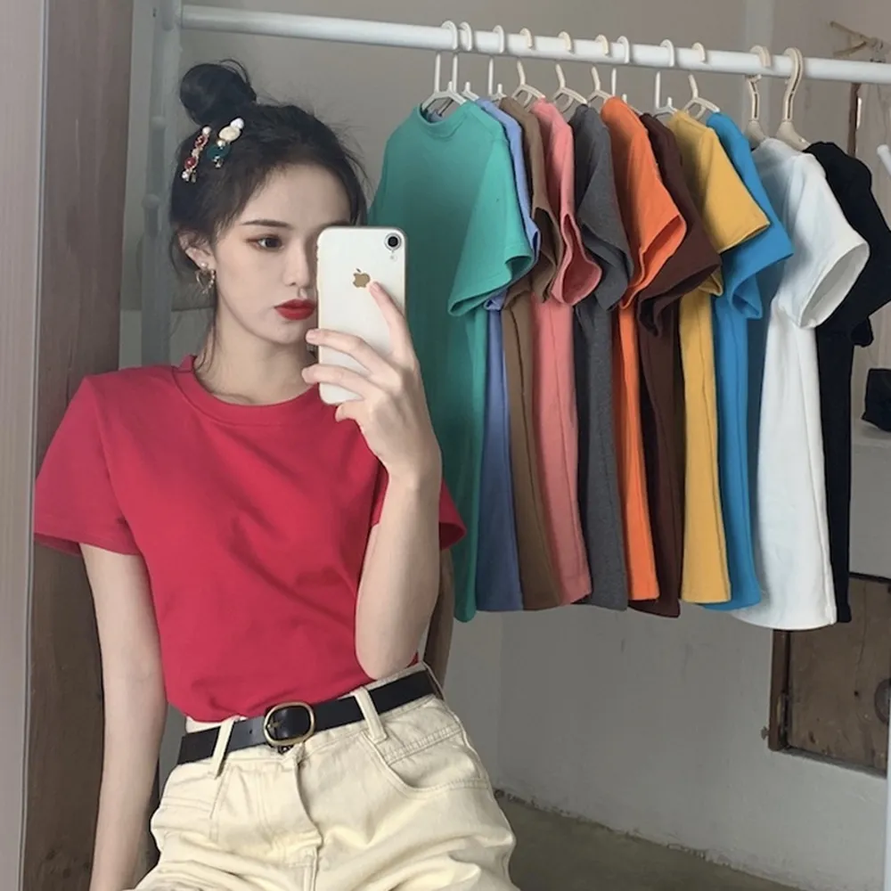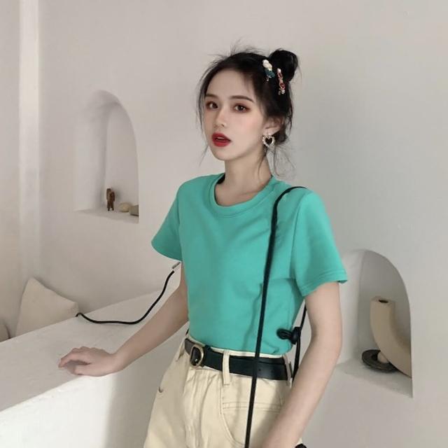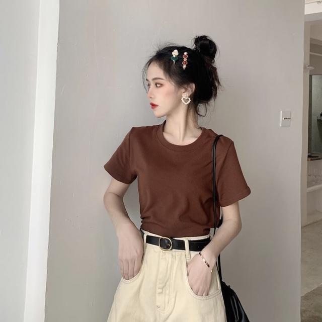 D.studio韓版基本款百搭圓領寬鬆短袖上衣短袖t恤女裝顯瘦上衣衣服寬 T222