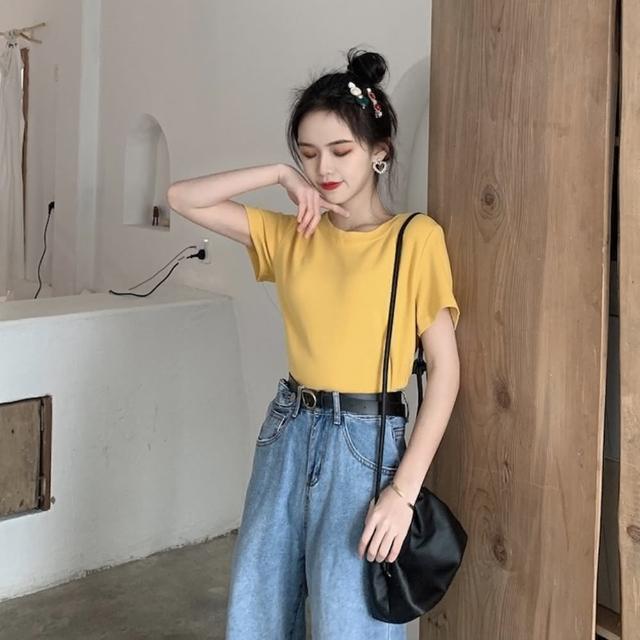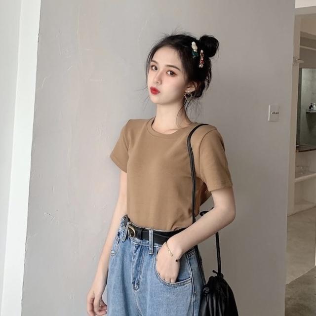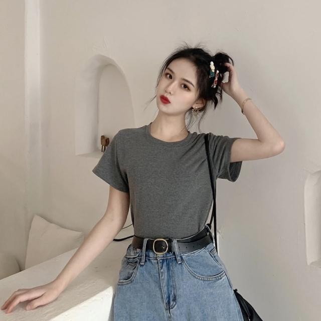 D.studio韓版基本款百搭圓領寬鬆短袖上衣短袖t恤女裝顯瘦上衣衣服寬 T222
