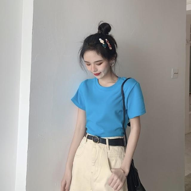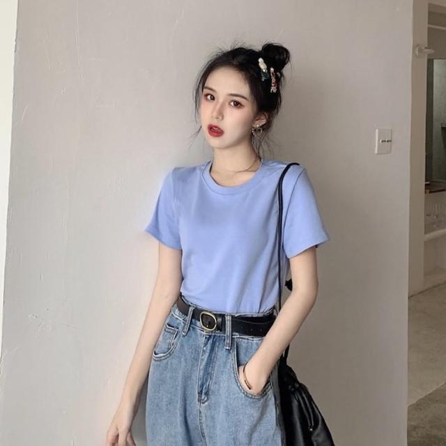D.studio韓版基本款百搭圓領寬鬆短袖上衣短袖t恤女裝顯瘦上衣衣服寬 T222