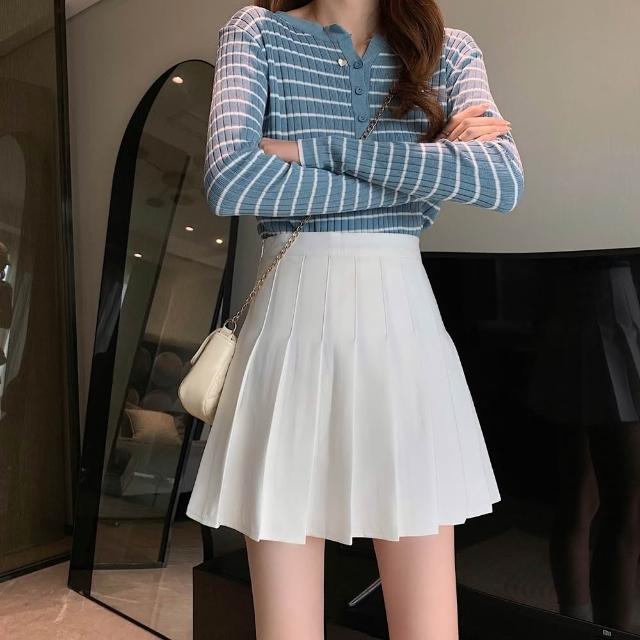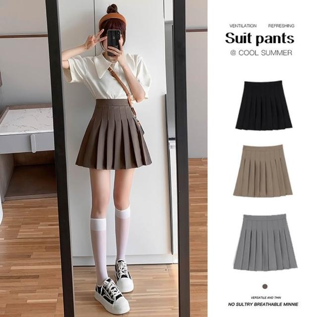 D.studio韓版高腰素色半身裙百褶裙 a字裙 裙子 褲子 女裝 P55
