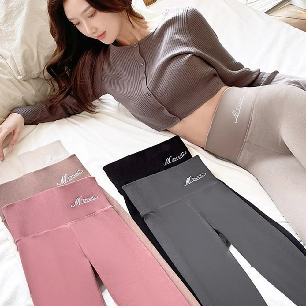 D.studio韓版薄內刷毛高腰緊身顯瘦發熱褲褲子長褲保暖褲女裝高腰褲 黑褲運動褲內搭褲緊身褲 P317