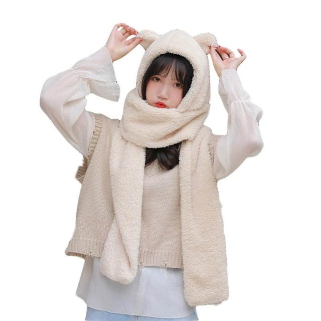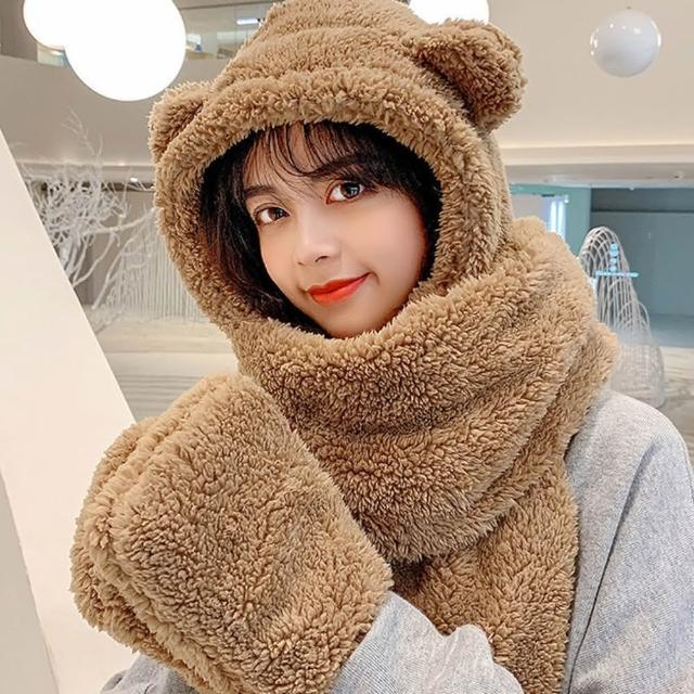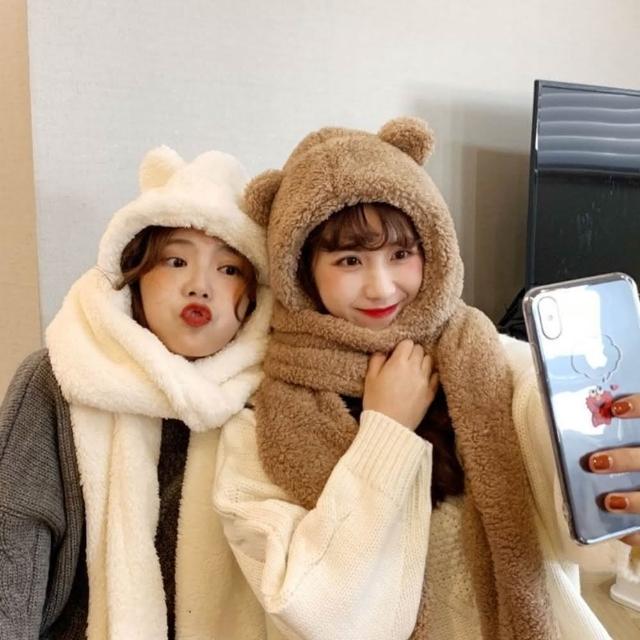 D.studio韓版加厚三合一小熊圍巾+手套+帽子保暖帽 女裝 配件 O119
