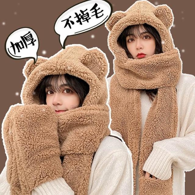 D.studio韓版加厚三合一小熊圍巾+手套+帽子保暖帽 女裝 配件 O119
