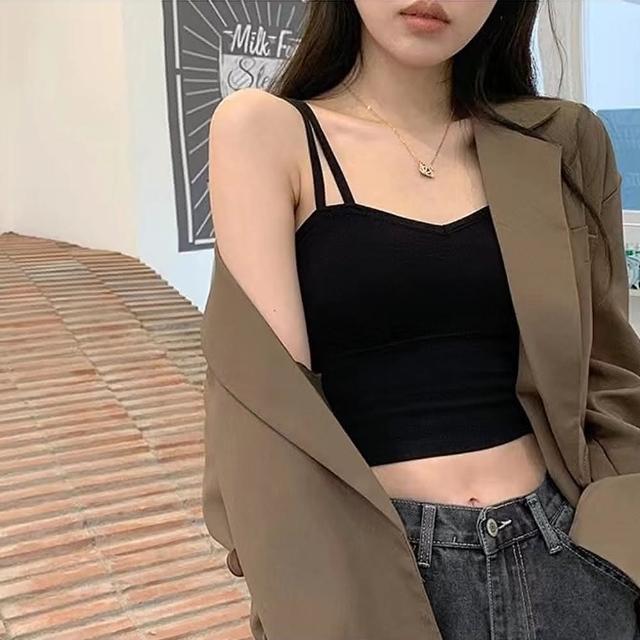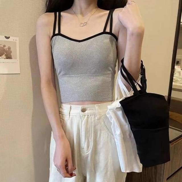 D.studio韓版V領運動風短版背心帶胸墊免穿內衣上衣小可愛女裝背心女衣服短版上衣 短板上衣 V249