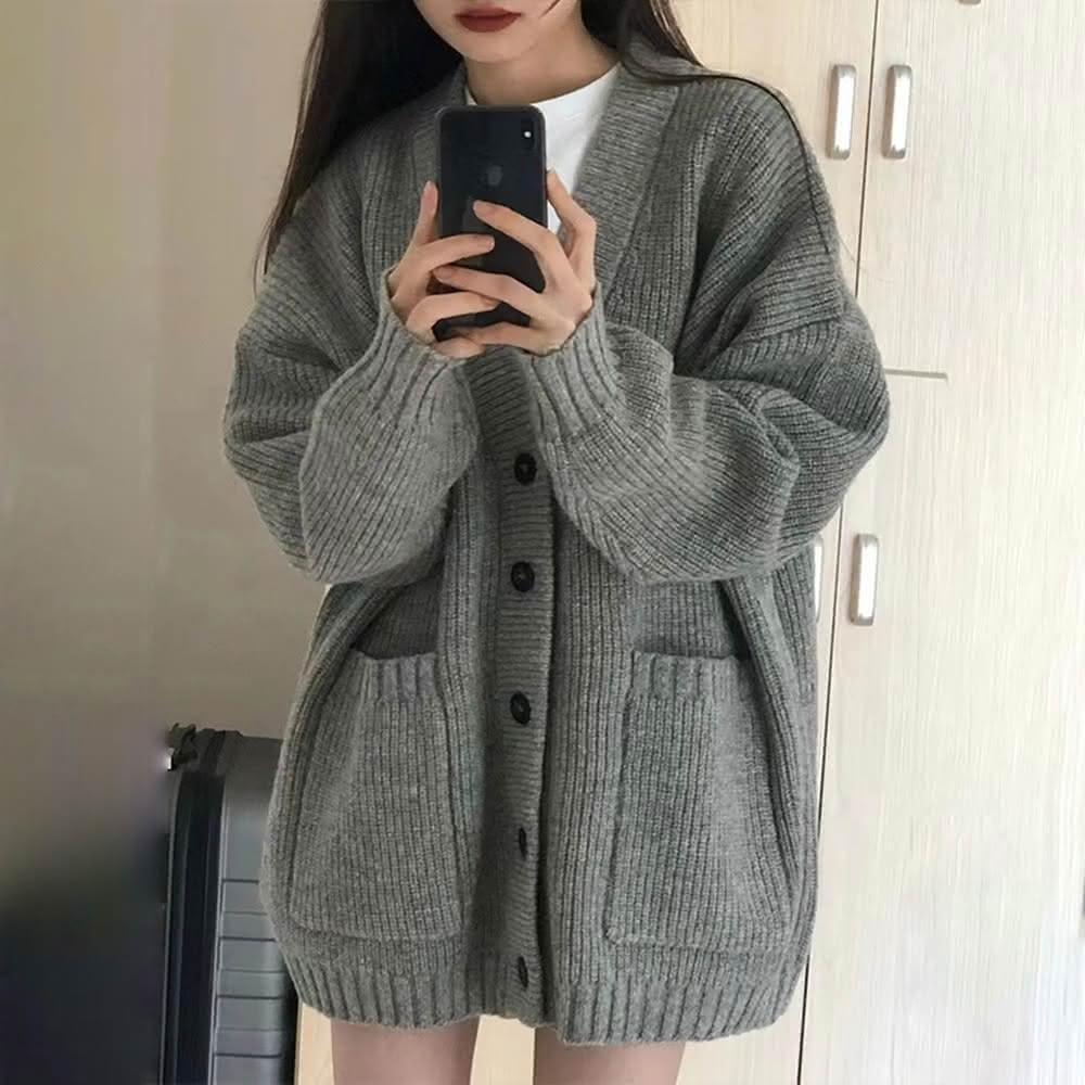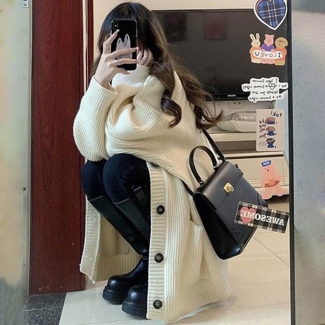 D.studio韓版慵懶學院風寬鬆針織外套上衣 女裝 衣服 外套 長袖上衣 長版外套 毛衣 J288 J95