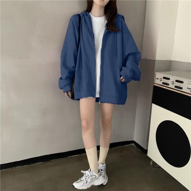 D.studio韓版慵懶風寬鬆內刷毛連帽外套上衣 女裝 衣服 外套 長袖上衣 J32
