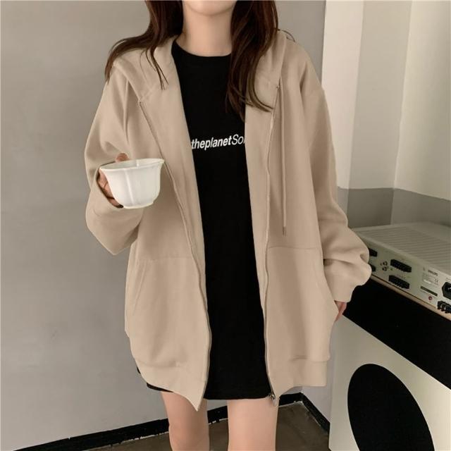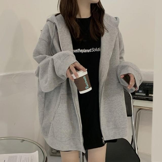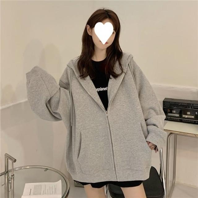 D.studio韓版慵懶風寬鬆內刷毛連帽外套上衣 女裝 衣服 外套 長袖上衣 J32