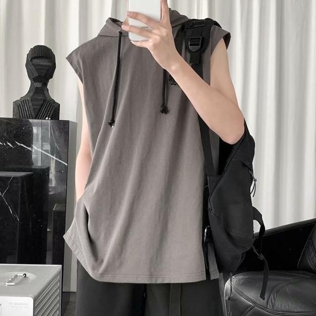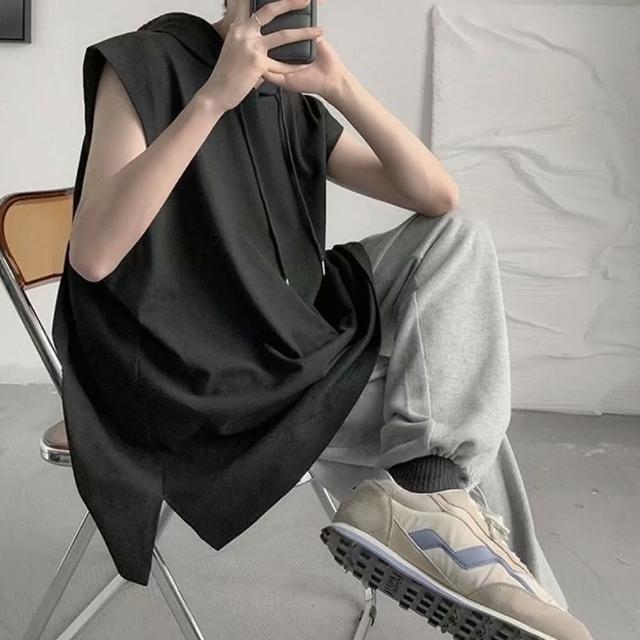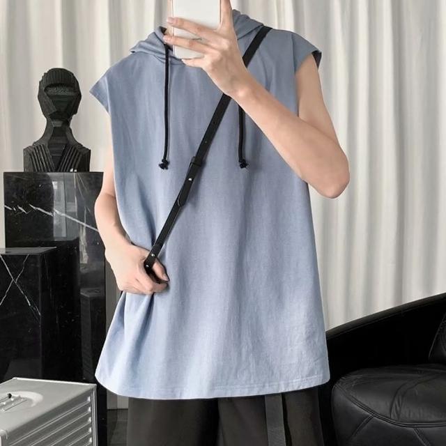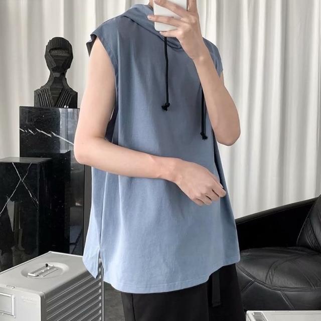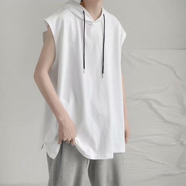 D.studio韓版男運動連帽背心上衣 男背心 運動上衣 無袖上衣 顯瘦 寬鬆上衣 素T 男裝 衣服 V269