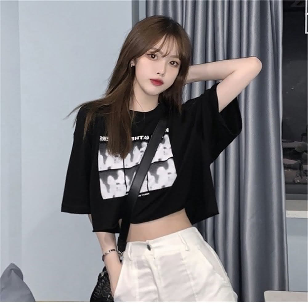 D.studio韓版修身小眾寬鬆高腰穿搭短版上衣短袖上衣短袖t恤女裝顯瘦上衣衣服寬鬆上衣短板上衣 T360