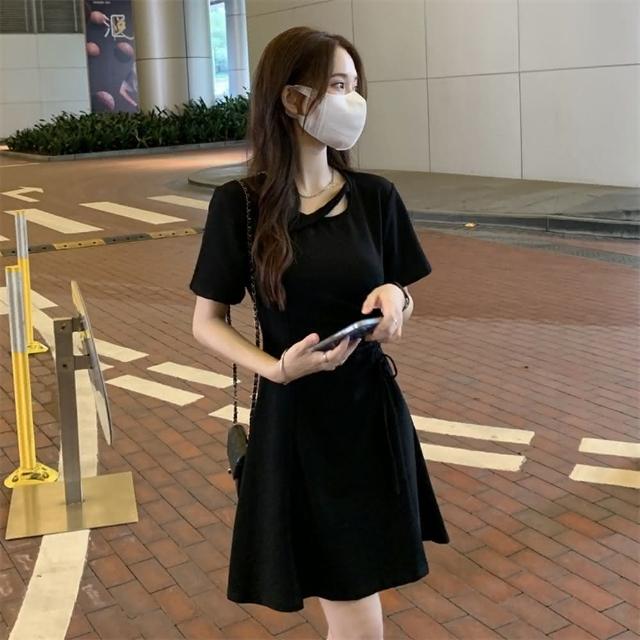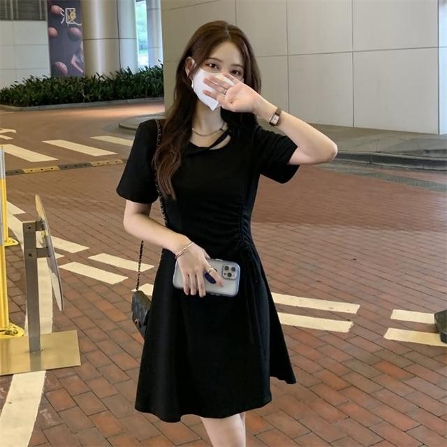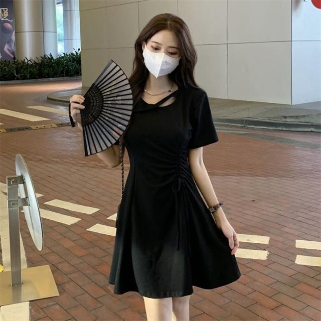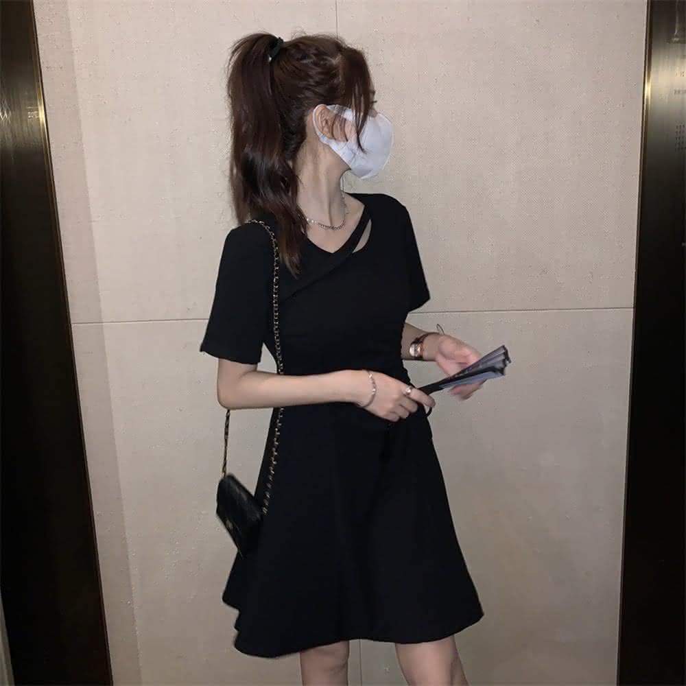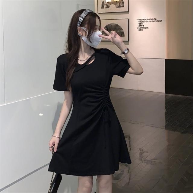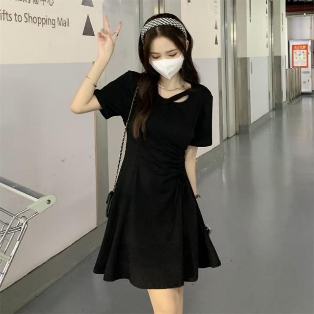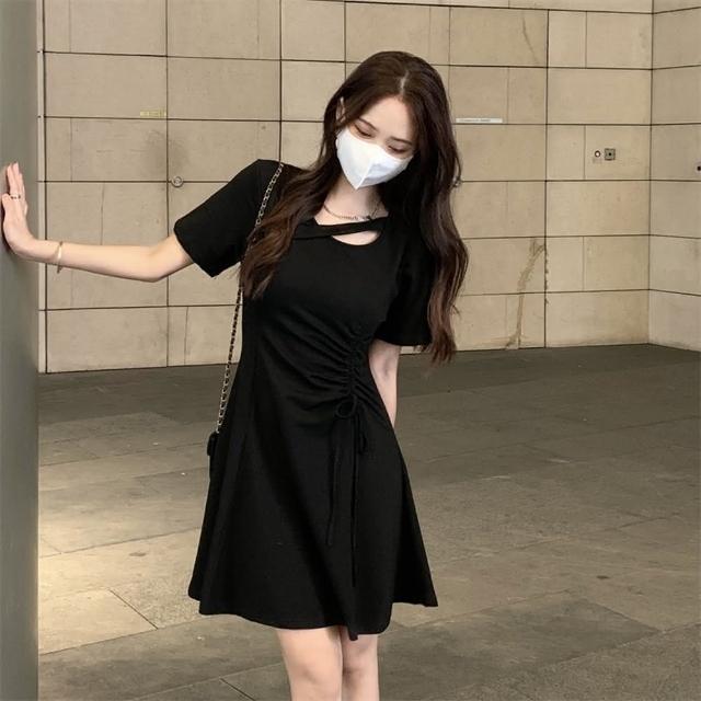 D.studio韓版收腰顯瘦蓬蓬小黑裙套裝 連身裙 連衣裙 裙子 短裙 短袖上衣 女裝 衣服 洋裝 S268