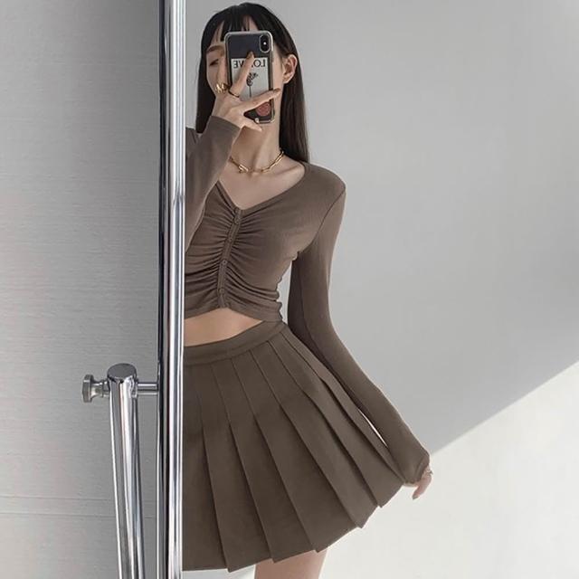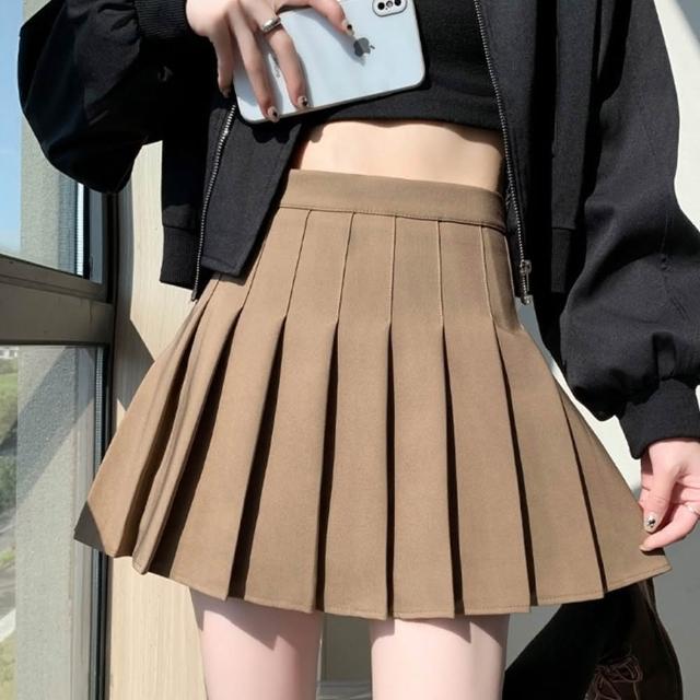 D.studio韓版學院風高腰顯瘦奶茶色系百褶裙短裙 半身裙 短裙 裙子 女裝 褲 P55