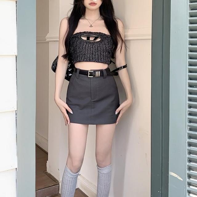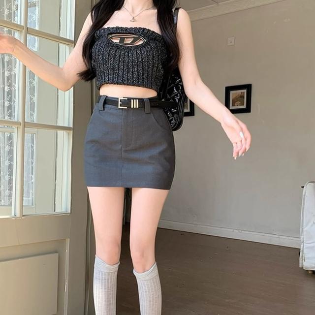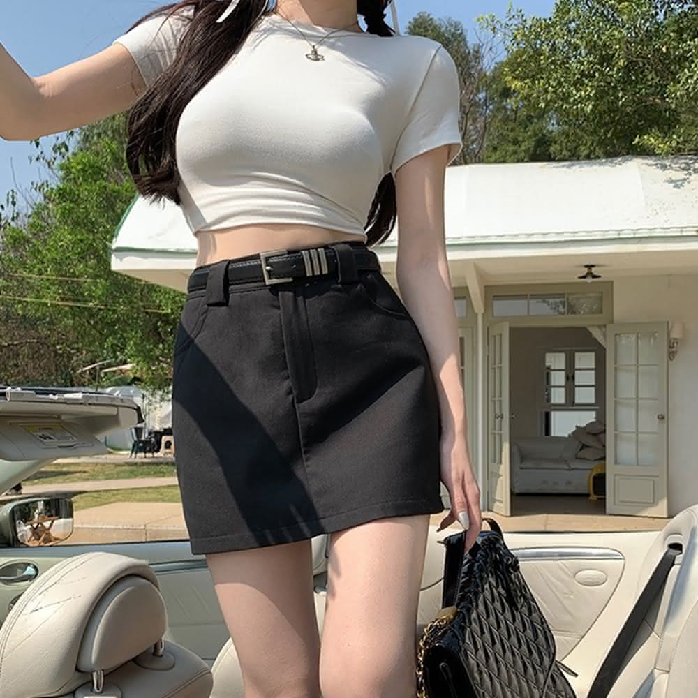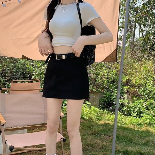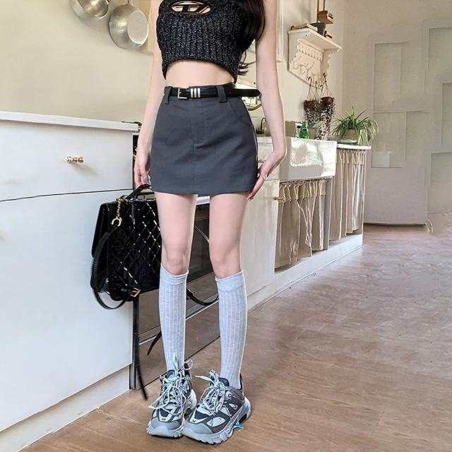 D.studio韓版高腰百搭顯瘦西裝裙內有安全褲 A字裙 半身裙 短裙 裙子 褲子 短褲 女裝 衣服 P327