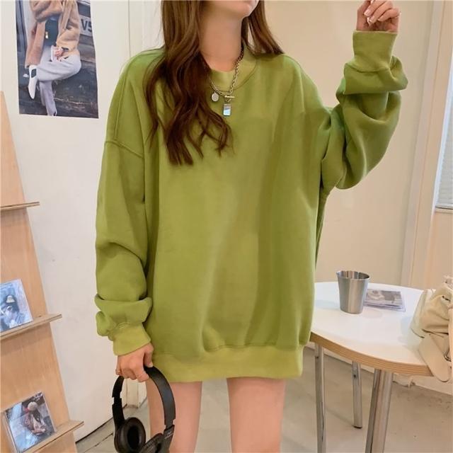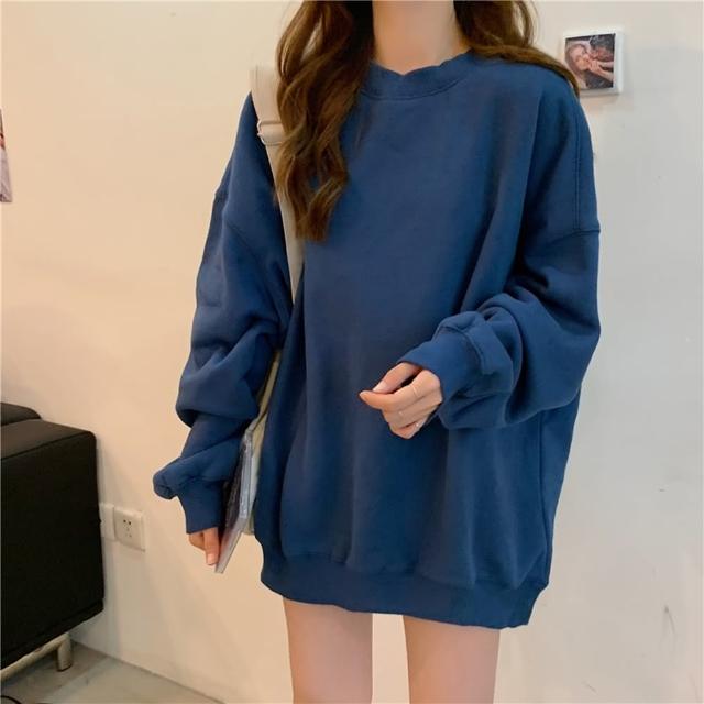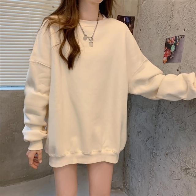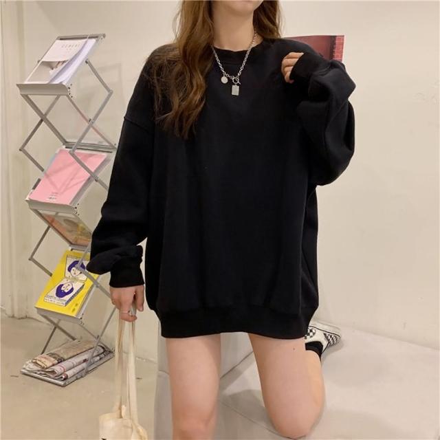 D.studio韓版中長款寬鬆內刷毛長袖上衣大學T女裝衣服寬鬆上衣顯瘦上衣長袖t恤冬裝發熱衣 W466