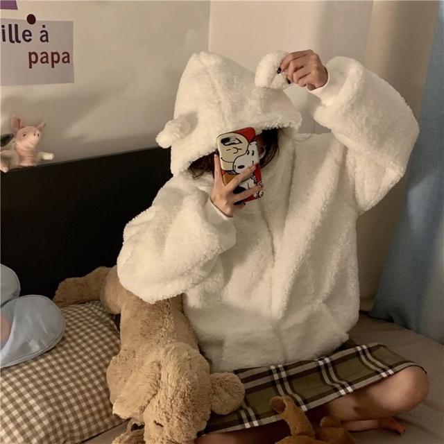 D.studio韓版甜美可愛毛絨小熊耳朵長袖外套毛絨外套 百搭外套 上衣 女裝 衣服 外套 J136