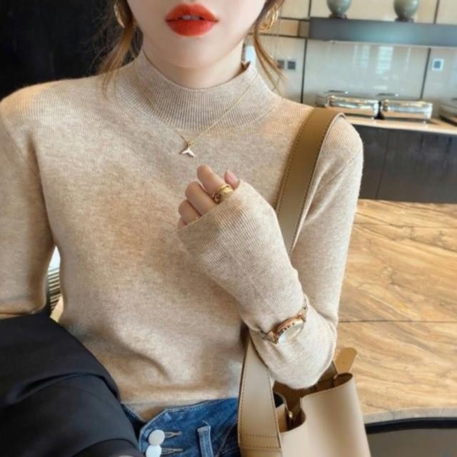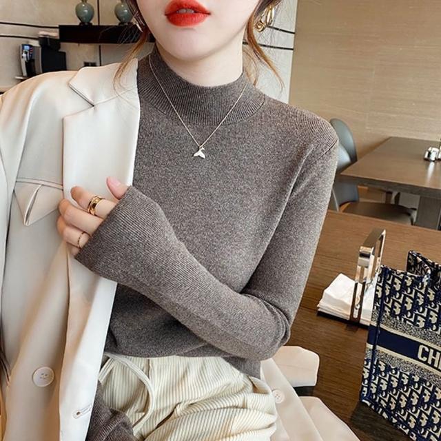 D.studio韓版高領打底顯瘦百搭針織上衣毛衣長袖上衣女裝衣服寬鬆上衣顯瘦上衣冬裝長袖t恤 W270