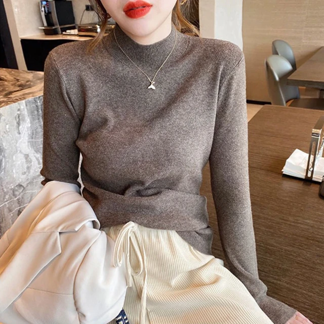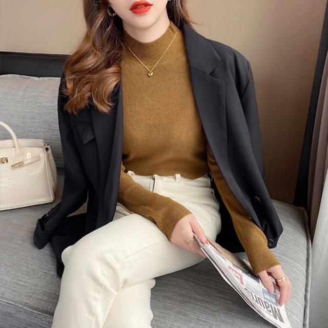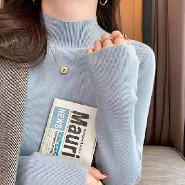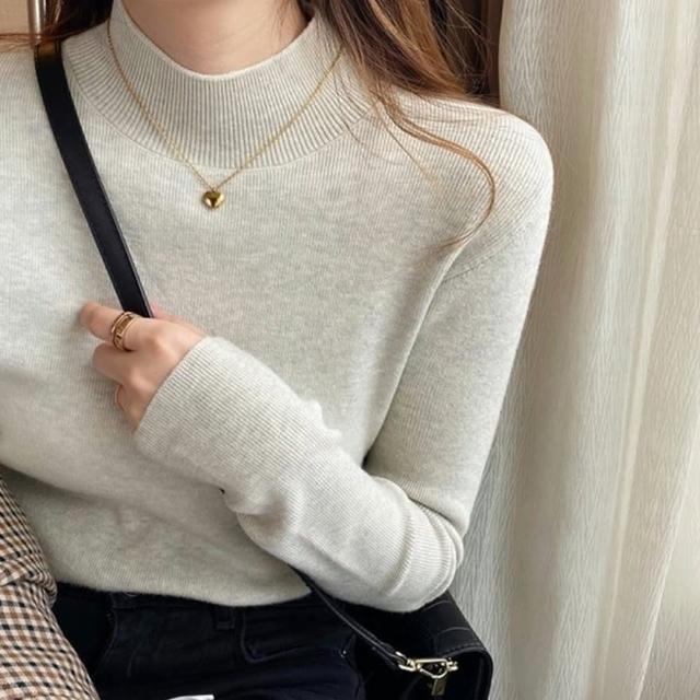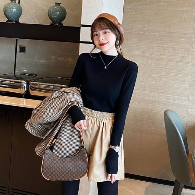D.studio韓版高領打底顯瘦百搭針織上衣毛衣長袖上衣女裝衣服寬鬆上衣顯瘦上衣冬裝長袖t恤 W270