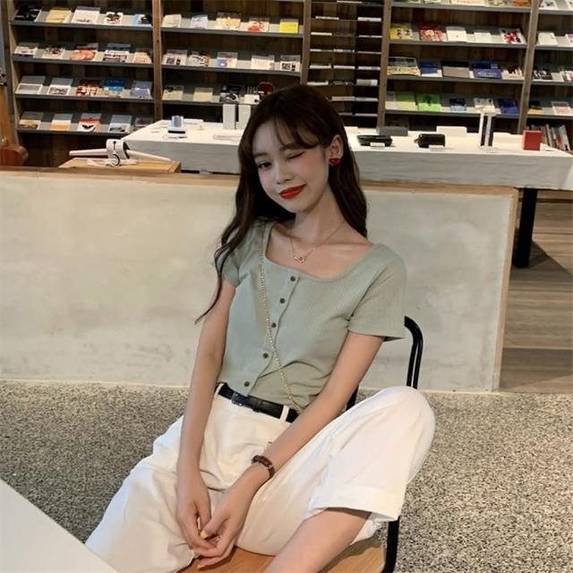 D.studio韓版百搭圓領露鎖骨短版針織上衣短袖上衣 短袖t恤 女裝 顯瘦上衣 衣服 寬鬆上衣 素T T261