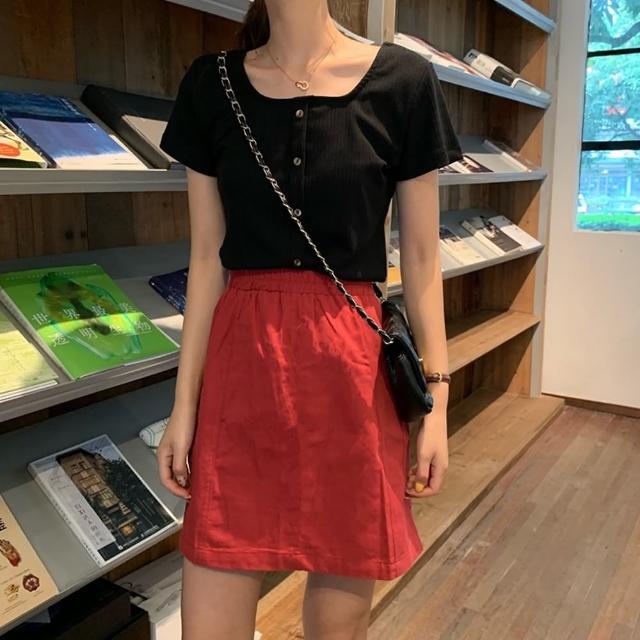 D.studio韓版百搭圓領露鎖骨短版針織上衣短袖上衣 短袖t恤 女裝 顯瘦上衣 衣服 寬鬆上衣 素T T261