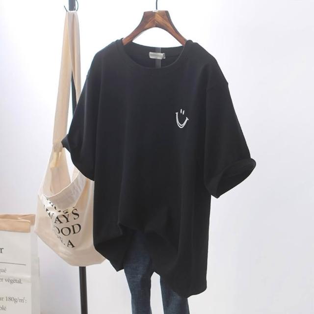 D.studio韓版寬鬆素色微笑短袖上衣短袖t恤 女裝 顯瘦上衣 衣服 寬鬆上衣 素T T408