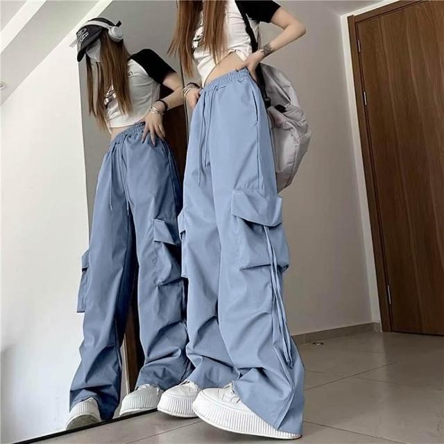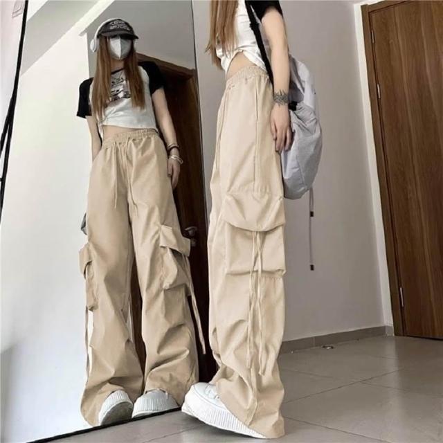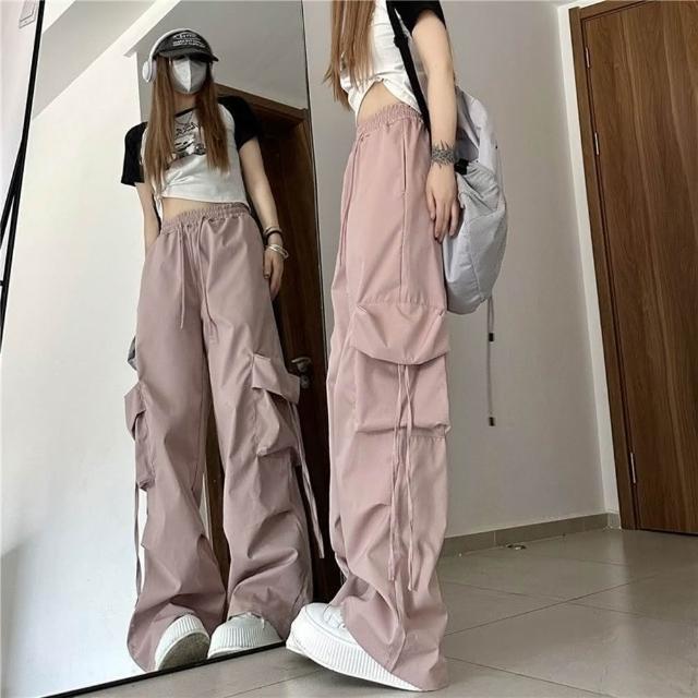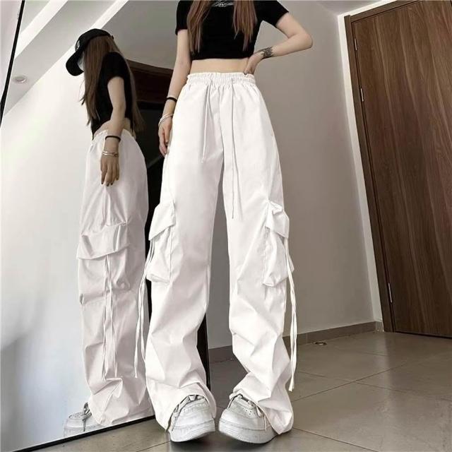 D.studio韓版寬鬆高腰直筒設計感鬆緊速乾工作褲寬褲 褲子 長褲 休閒褲 女裝 高腰褲 【P294】