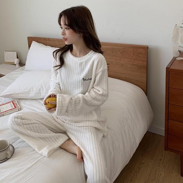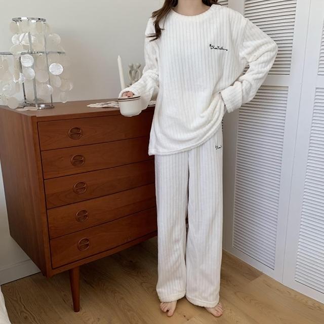 D.studio韓版休閒居家珊瑚絨睡衣套裝針織上衣 毛衣 長袖上衣 女裝 衣服 寬鬆上衣 冬裝 發熱衣 S283