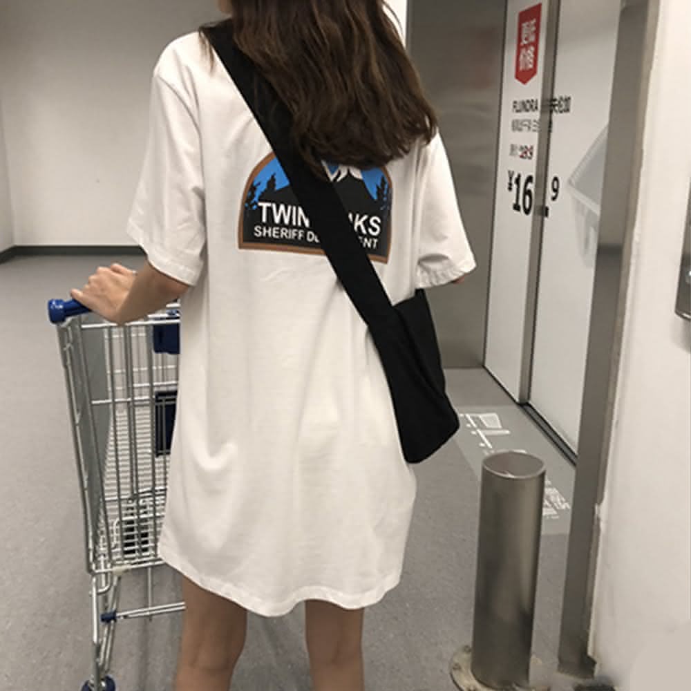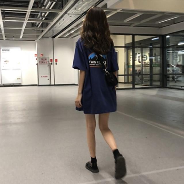 D.studio韓版中長款寬鬆下半身失蹤短袖T恤連衣裙短袖上衣短袖t恤女裝顯瘦上衣衣服寬鬆上衣 T262
