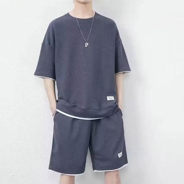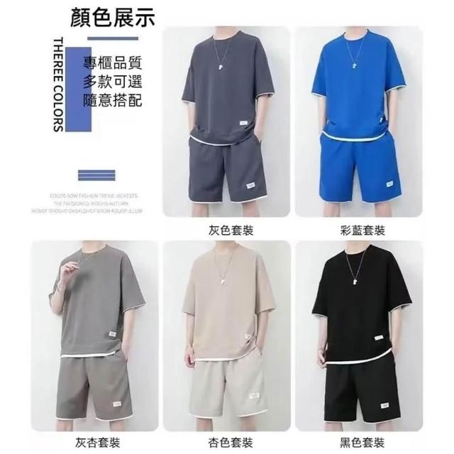 D.studio韓版寬鬆休閒運動套裝 短袖上衣+五分短褲運動短褲短褲男男裝褲子男運動褲短袖t恤衣服 S262