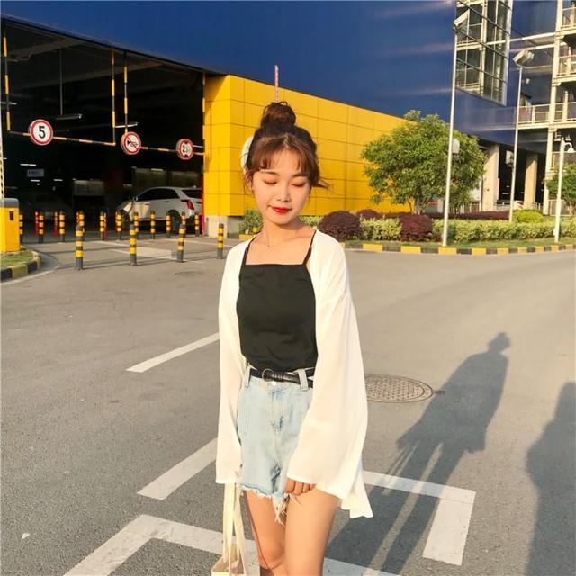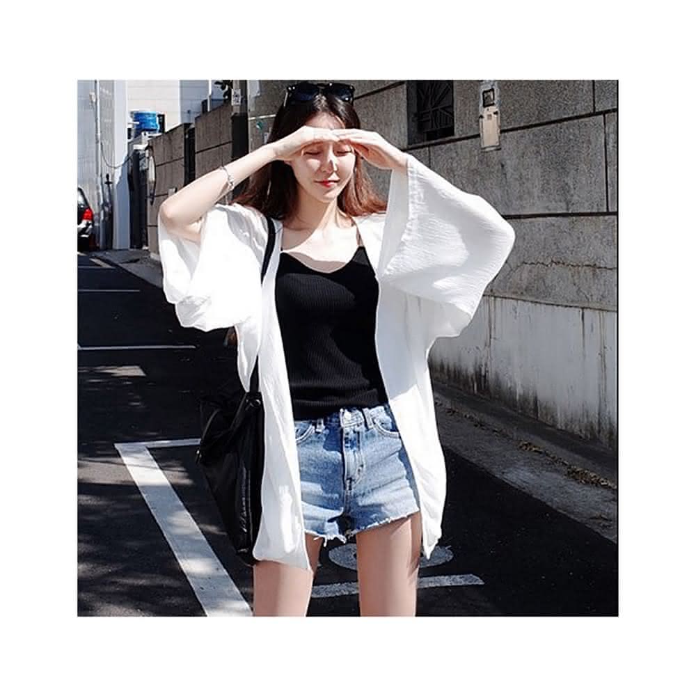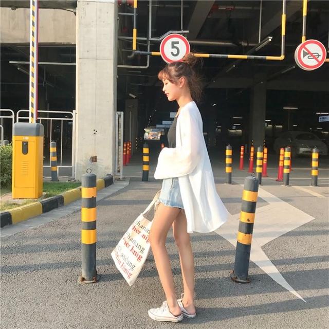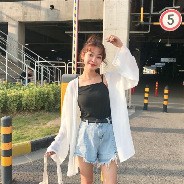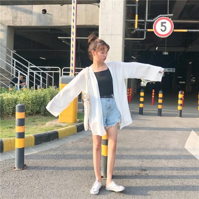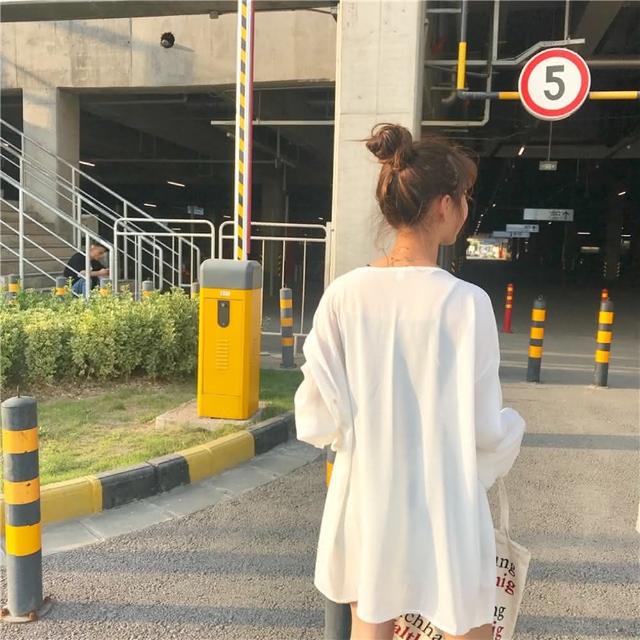 D.studio韓版白色薄款寬鬆雪紡罩衫防曬外套 薄外套 長版外套 休閒外套 J56