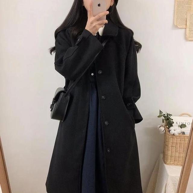D.studio韓版英倫風長版黑色大衣外套 風衣 百搭外套 上衣 女裝 衣服 長袖上衣 長版外套 J181