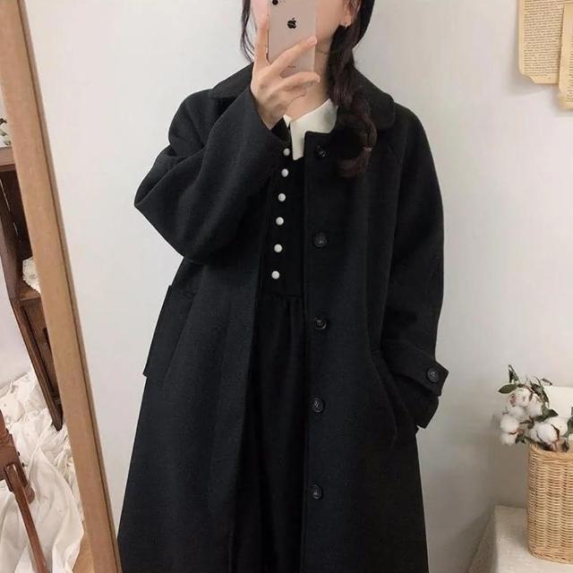 D.studio韓版英倫風長版黑色大衣外套 風衣 百搭外套 上衣 女裝 衣服 長袖上衣 長版外套 J181