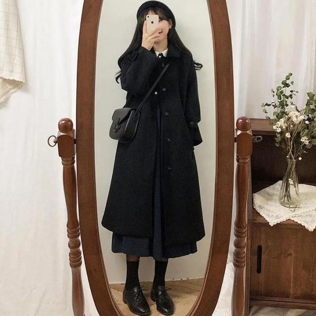 D.studio韓版英倫風長版黑色大衣外套 風衣 百搭外套 上衣 女裝 衣服 長袖上衣 長版外套 J181