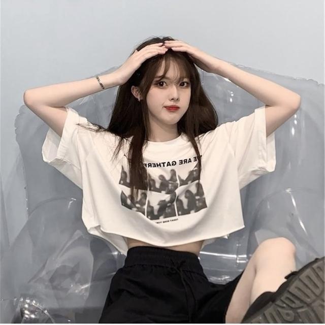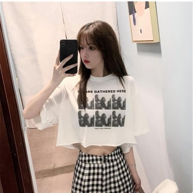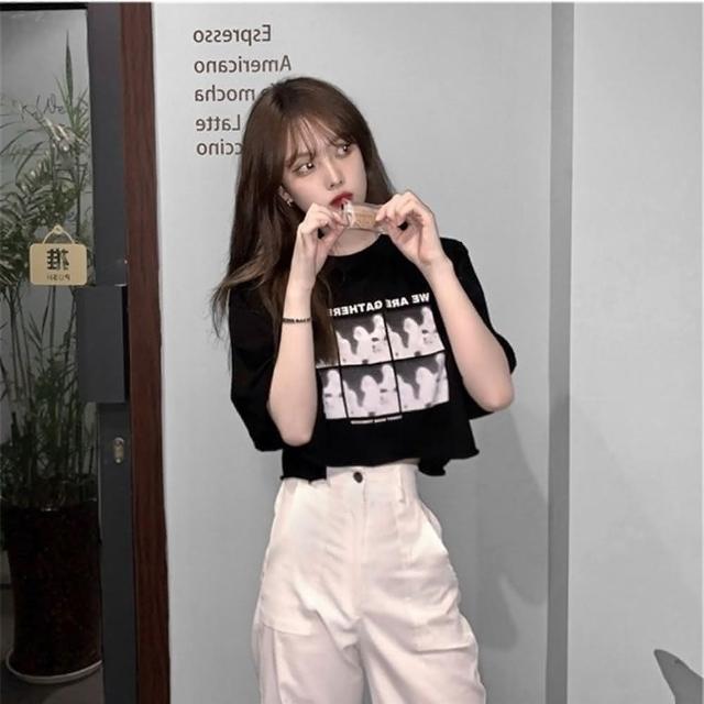 D.studio韓版修身小眾寬鬆高腰穿搭短版上衣短袖上衣 短袖t恤 女裝 顯瘦上衣 衣服 寬鬆上衣 T360