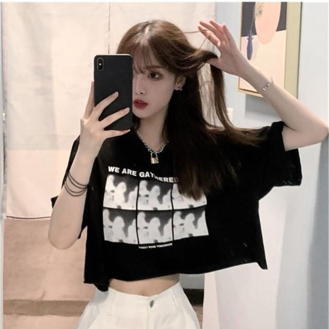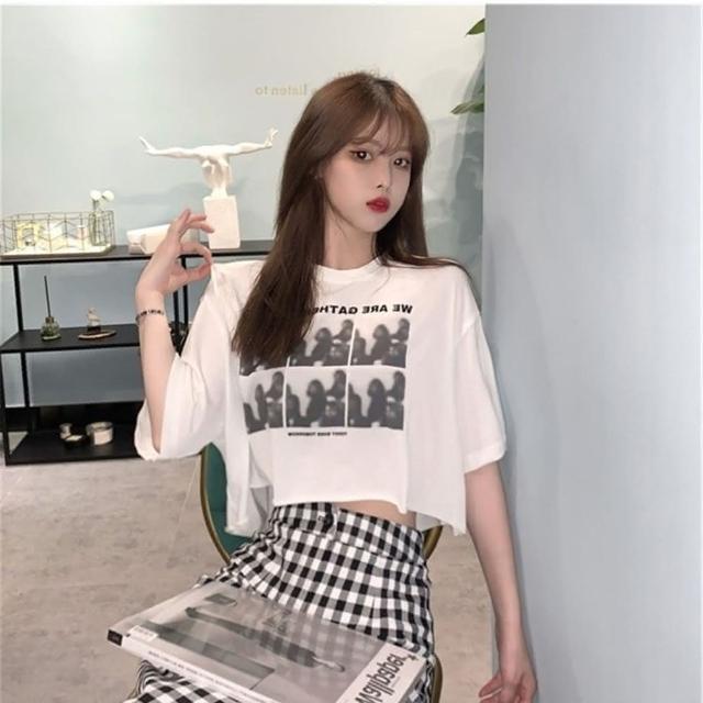 D.studio韓版修身小眾寬鬆高腰穿搭短版上衣短袖上衣 短袖t恤 女裝 顯瘦上衣 衣服 寬鬆上衣 T360