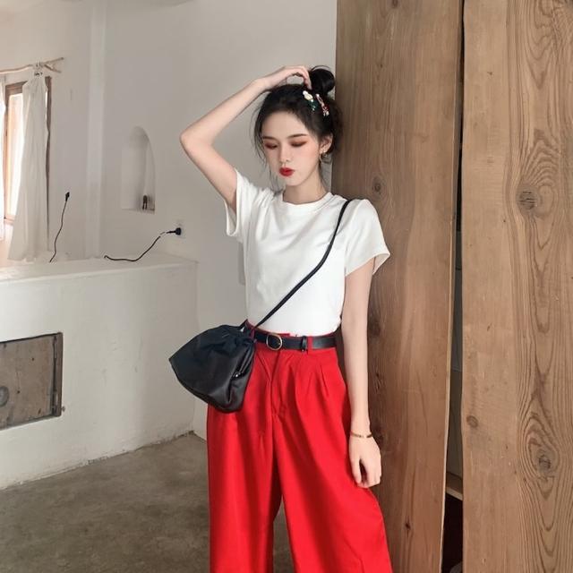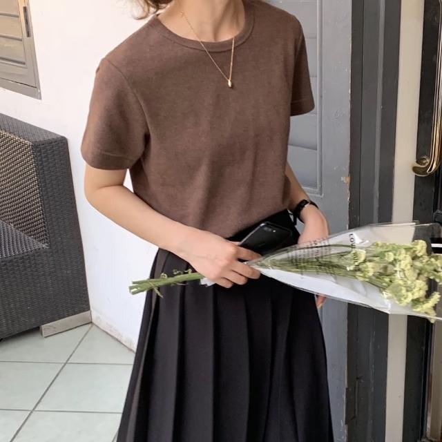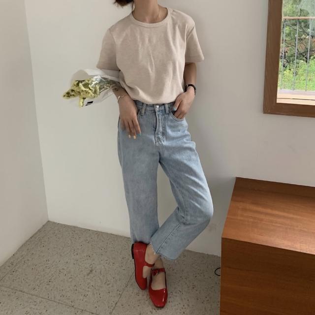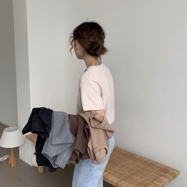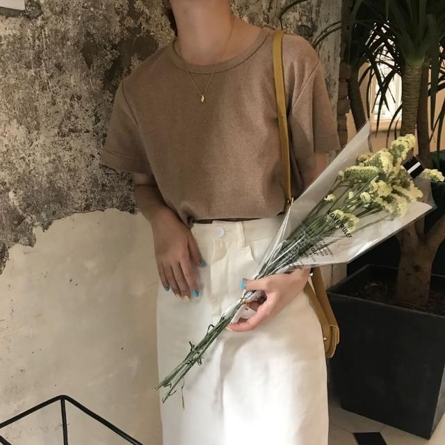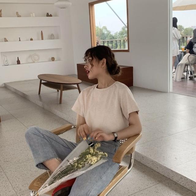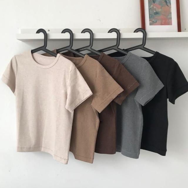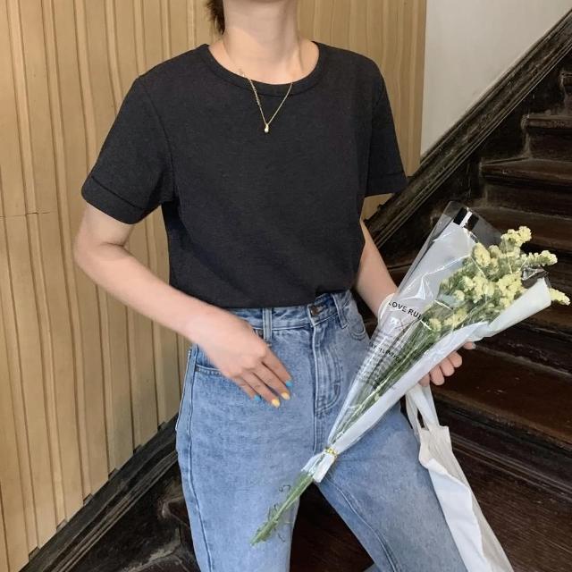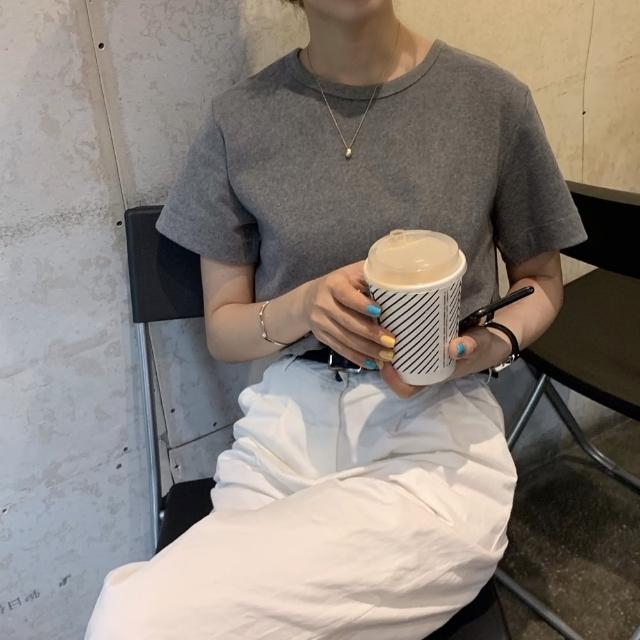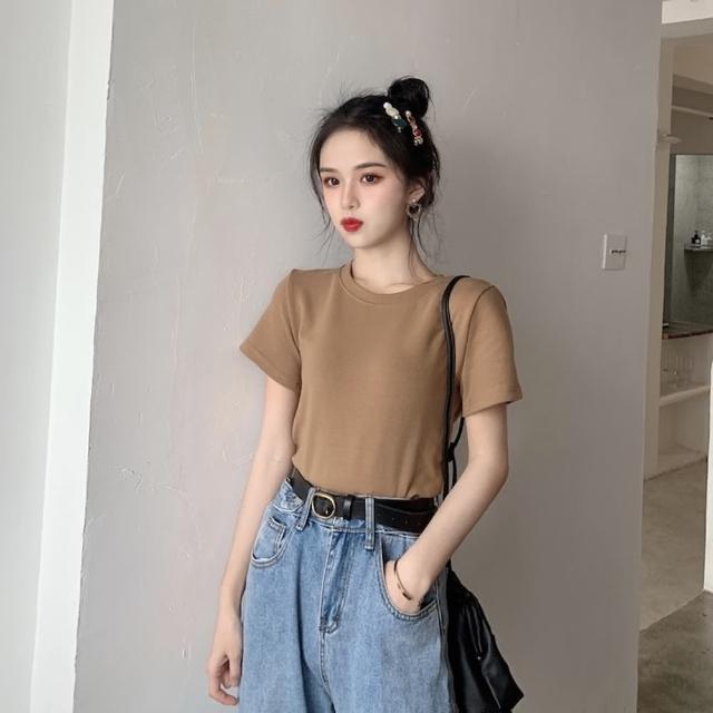 D.studio韓版素色圓領修身顯瘦短袖上衣 T222短袖t恤 女裝 顯瘦上衣 衣服 寬鬆上衣 素T 短版上衣