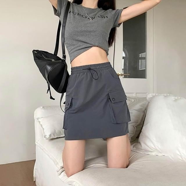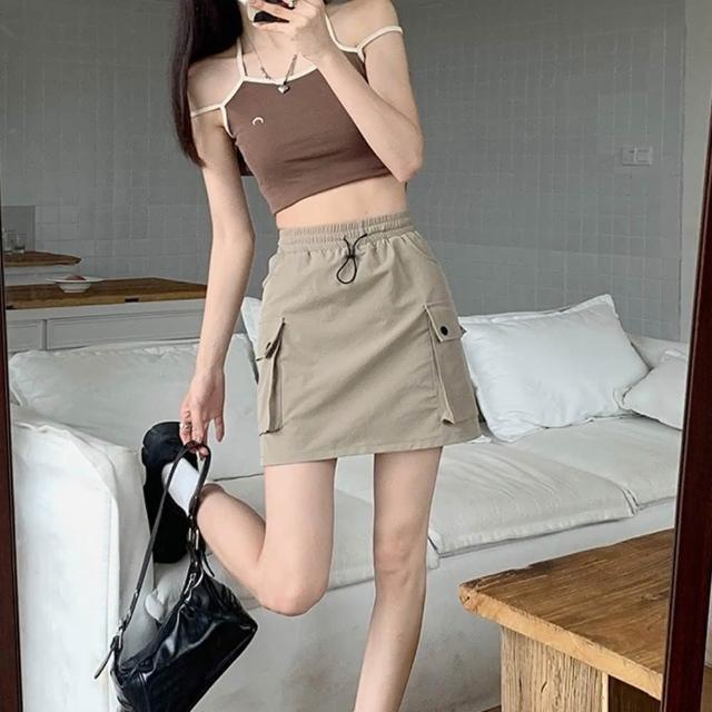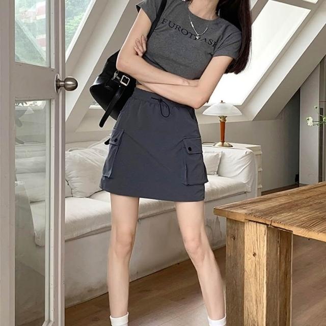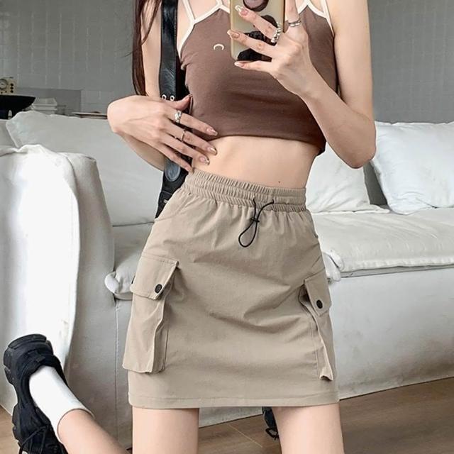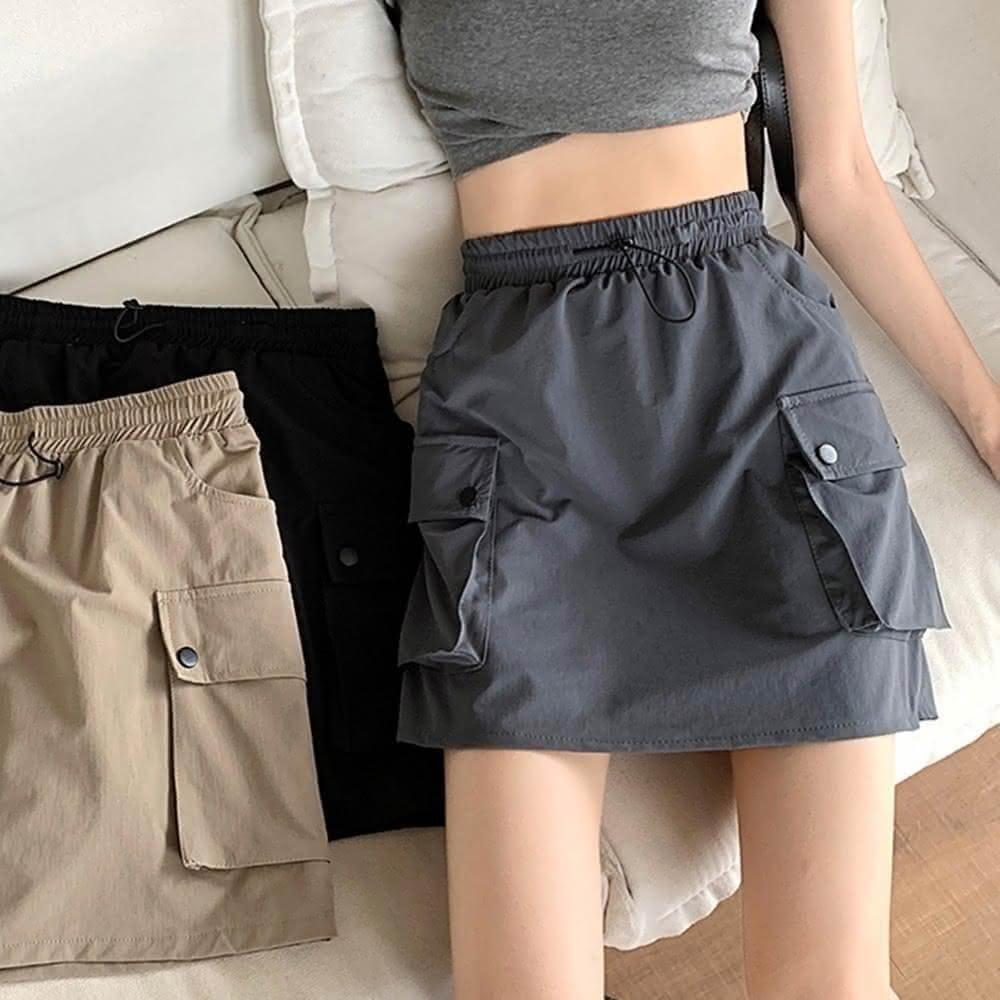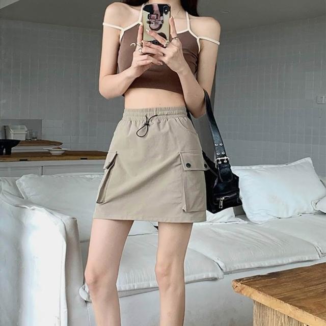 D.studio韓版高腰鬆緊腰工裝半身裙短裙 裙子 褲裙 A字裙 褲子 女裝 短褲 工作褲 工裝褲 P337