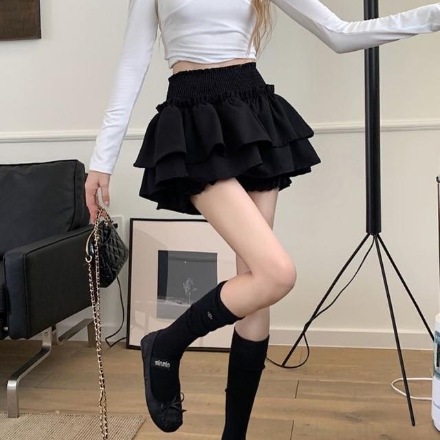 D.studio韓版法式高腰顯瘦半身裙內有安裙褲 蛋糕裙 蓬蓬裙 短裙 裙子 褲裙 褲子 女裝 短褲 P341