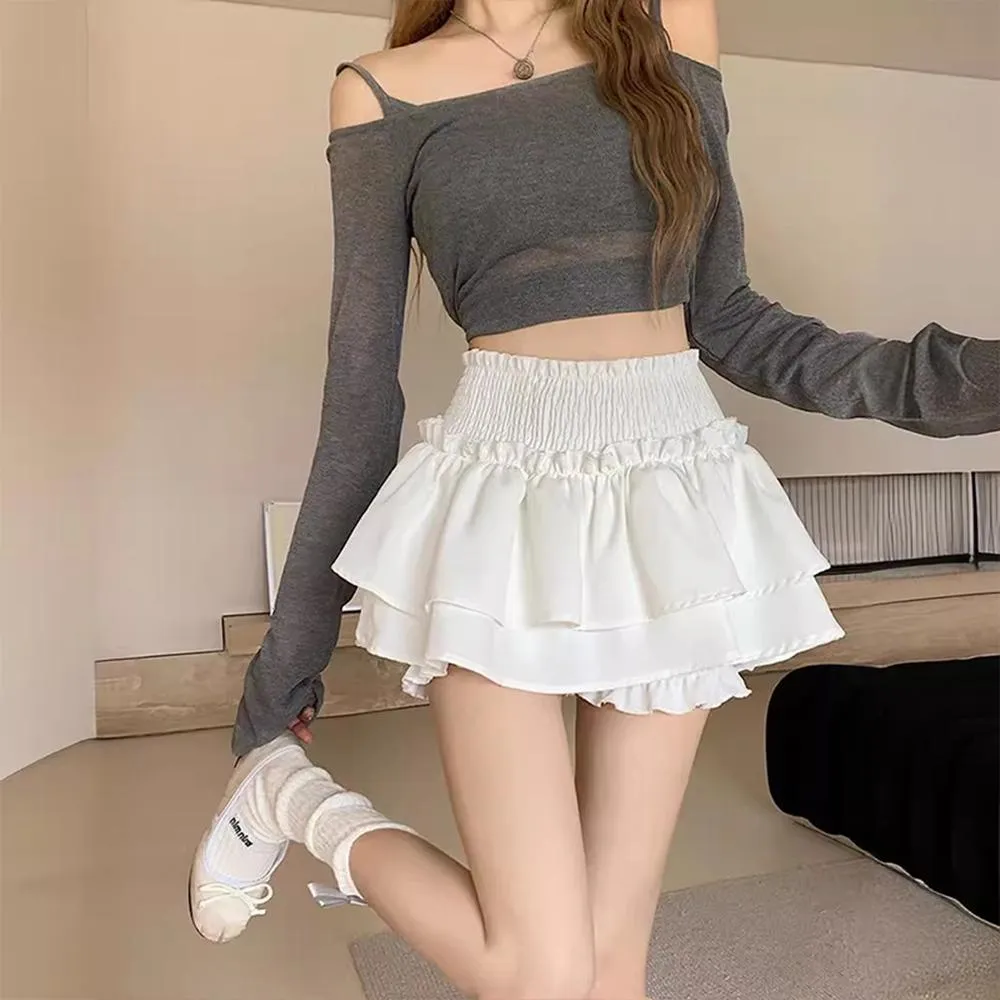 D.studio韓版法式高腰顯瘦半身裙內有安裙褲 蛋糕裙 蓬蓬裙 短裙 裙子 褲裙 褲子 女裝 短褲 P341
