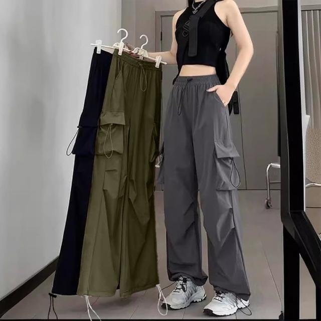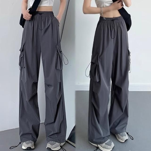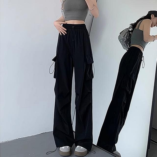 D.studio韓版寬鬆直筒大口袋工裝褲寬褲 褲子 長褲 休閒褲 女裝 高腰褲 拖地褲 直筒褲 黑褲 P267