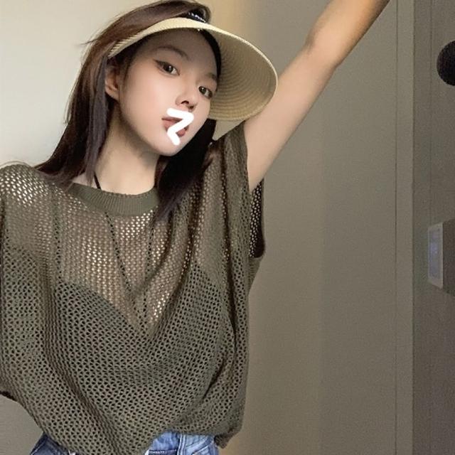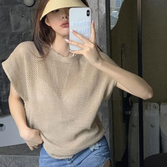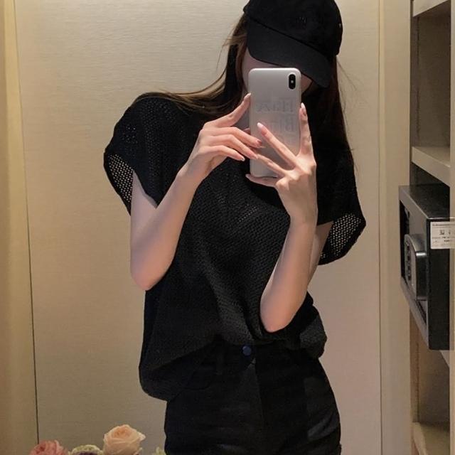 D.studio韓版氣質透視鏤空針織上衣短袖上衣 短袖t恤 女裝 顯瘦上衣 衣服 夏天女裝 T578