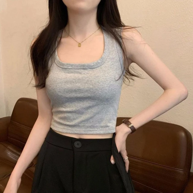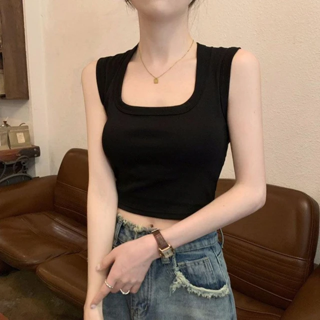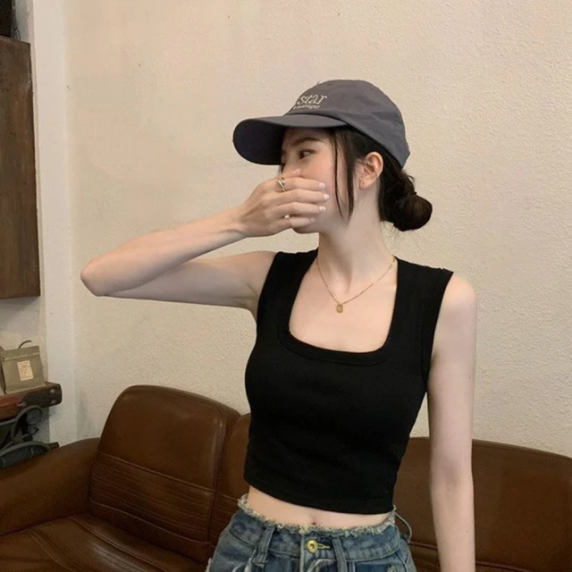 D.studio韓版方領寬肩短版背心帶胸墊免穿內衣 小可愛 女裝 衣服 短版上衣 短板上衣 夏天女裝 運動背心 V275