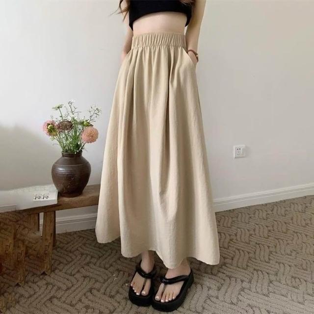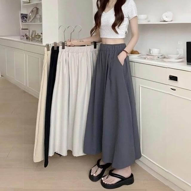 D.studio韓版日系慵懶氣質半身裙長裙 裙子 褲子 長褲 休閒褲 女裝 高腰褲 A字裙 P342