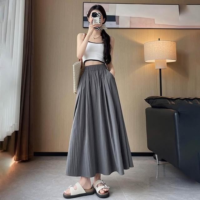 D.studio韓版小眾氣質高腰垂感半身裙長裙 裙子 褲子 長褲 休閒褲 女裝 高腰褲 A字裙 P342