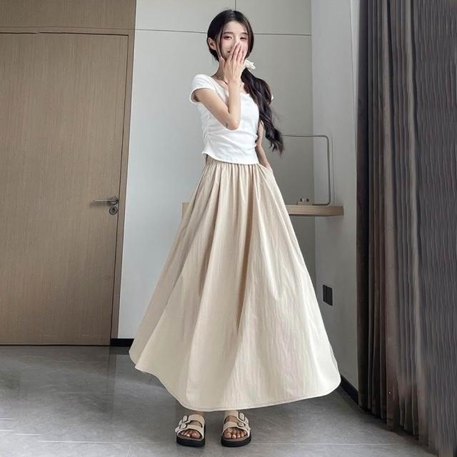 D.studio韓版小眾氣質高腰垂感半身裙長裙 裙子 褲子 長褲 休閒褲 女裝 高腰褲 A字裙 P342