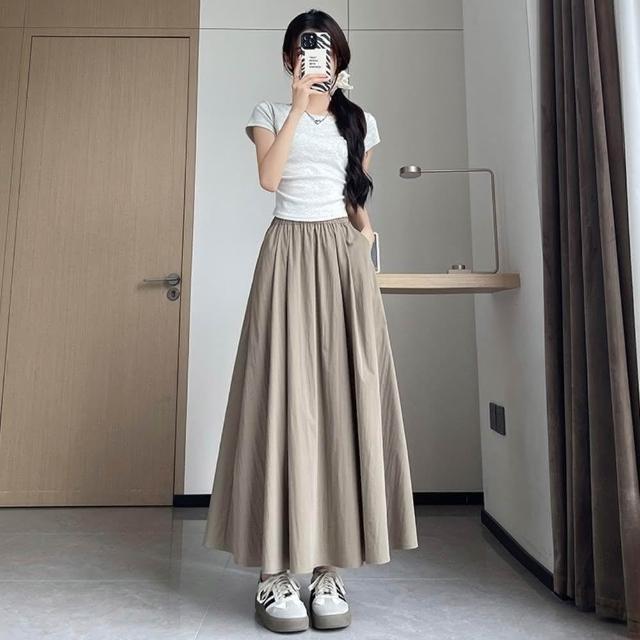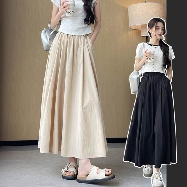 D.studio韓版小眾氣質高腰垂感半身裙長裙 裙子 褲子 長褲 休閒褲 女裝 高腰褲 A字裙 P342